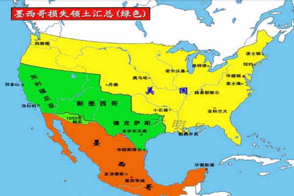 美墨战争是公元1846年在北美大陆爆发的一场殖民战争,历时两年,主要参战双方都是新独立的殖民地国家——美国和墨西哥。在此战中,美国将墨西哥按在地上狠狠蹂躏了一番,夺取了230多万平方公里的土地,相当于超过墨西哥一半的国土。美国自此实力大增,成为横跨北美的庞然大物,基本掌握了北美洲政治军事主权。而落败的墨西哥不仅丧失了大量的领地,还使得原本就动荡的政治越发混乱,从此一蹶不振。