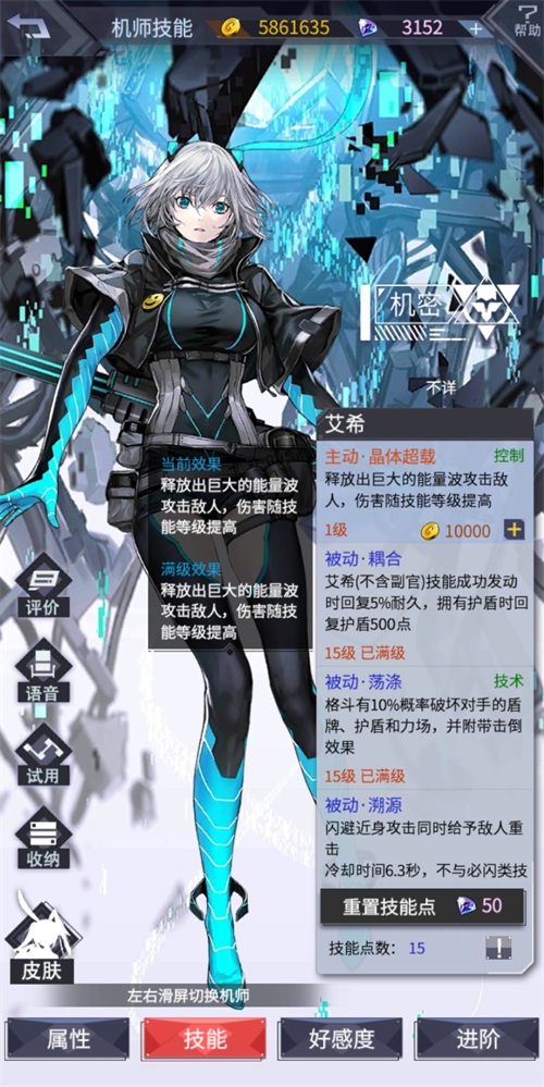 被动-机械侵蚀:冰属性以外攻击附带酸蚀效果,最小间隔2.1秒。(15级效果)
