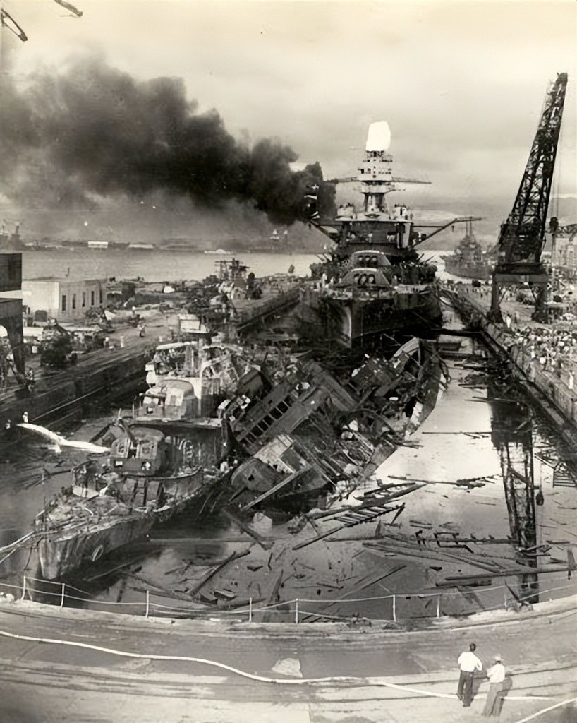 日军偷袭珍珠港亚利桑那号战列舰的沉没是第二次世界大战中美军最窝囊的时刻。日本偷袭珍珠港事件,使这艘战列舰和它的大部分船员都丧生了,这在美国海军历史上写下了浓厚的一笔。1941 年 12 月 7 日早晨,珍珠港笼罩在周日的宁静之中。上午 7 点 55 分,宁静被飞机的轰鸣声打破,从夏威夷西北部的六艘航空母舰上起飞的一波又一波日本飞机对港口发起了的突然袭击。此次袭击针对的是驻扎在夏威夷的美军太平洋舰队,在随后的攻击中,亚利桑那号战列舰成为日本轰炸机的主要目标。袭击发生大约 15 分钟后,日本的 B5N“凯特”鱼雷轰炸机投下的一枚 1,760 磅重的穿甲炸弹,炸弹击中了亚利桑那号的甲板并穿透了存放舰艇弹药的弹药库。由此产生的爆炸给予亚利桑那号毁灭性的打击。它引发了巨大火球,