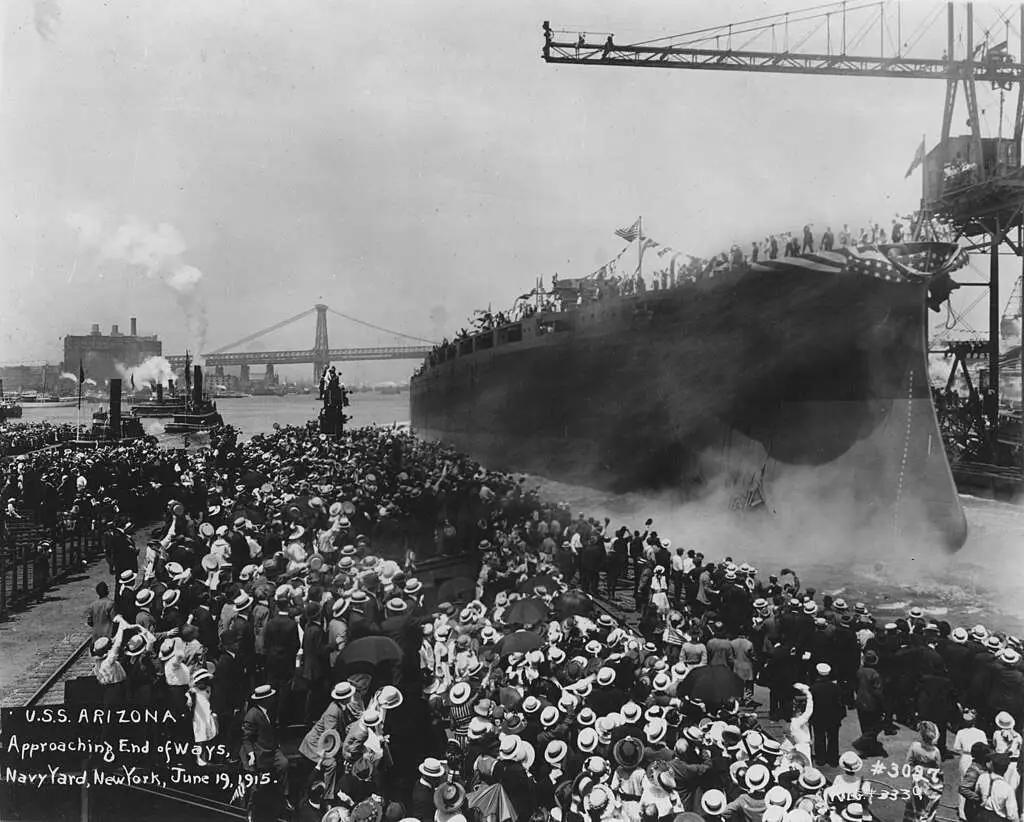 亚利桑那号战列舰下水。