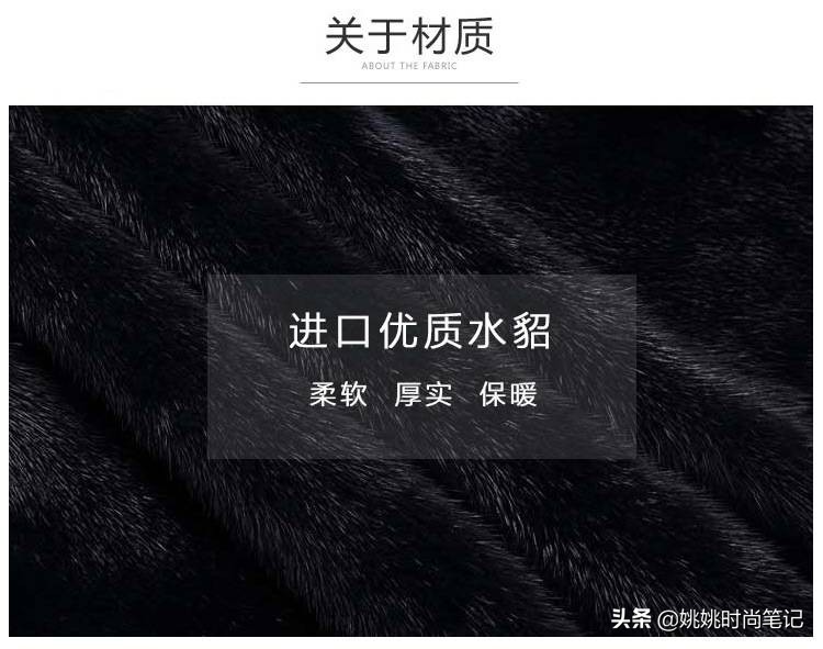 水貂皮草,是皮草类价格最高,而且毛最短的毛,它的底绒厚实,深得北方朋友的喜欢,保暖效果好。