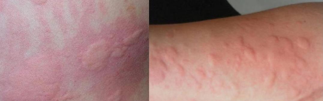 症状:皮肤表面出现红色、肤色的风团,可发生在任何部位,比较痒,过几个小时可能会自动消散,过一天又起,是由于过敏引起的。