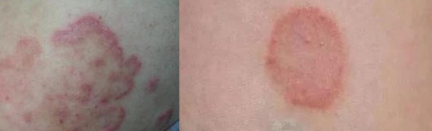症状:都是真菌感染引起的,臀部出现叫股癣,其他部位出现皮损统称为体癣。症状比较明显,在腹股沟或者大腿内侧出现环状或者弧形红斑,红斑上面可存在水疱、脱屑等,比较痒。