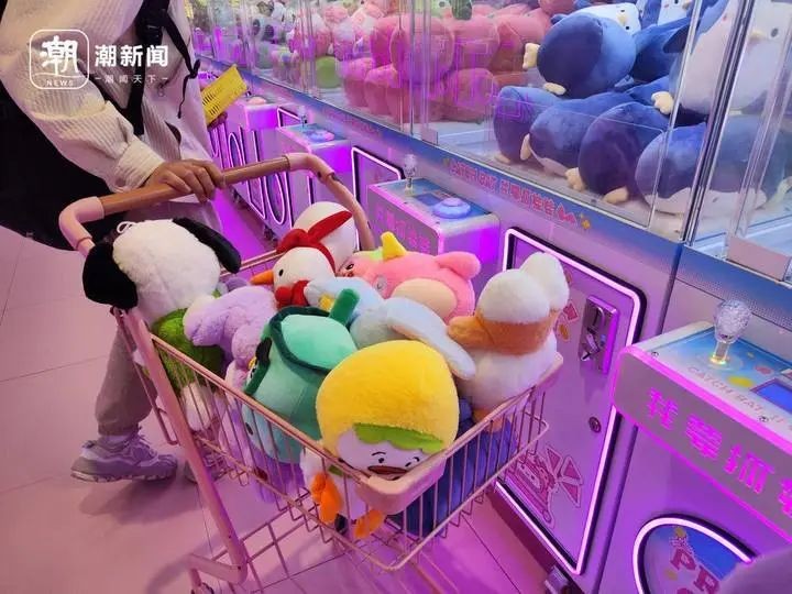 在“我要抓娃娃”店内,夏先生收获颇丰,他已经抓了满满一车。“算上剩下的游戏币,大概花费120元左右吧。”他说,虽然知道娃娃价值可能并不匹配花费,但他十分享受抓娃娃的过程。