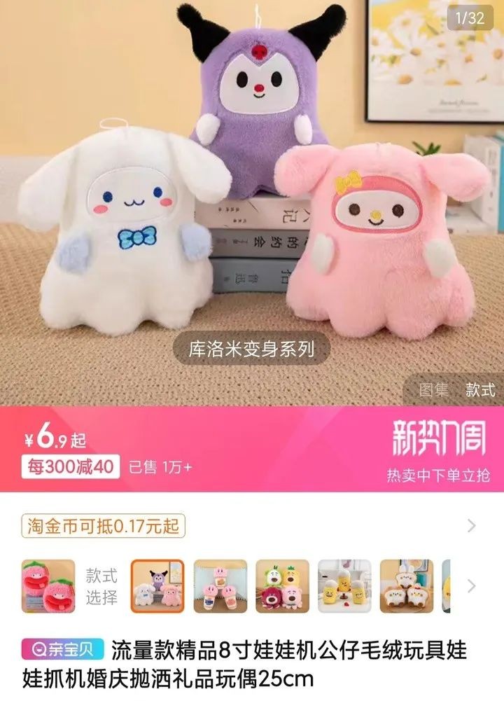 在购物平台上,其中一款没有标签的娃娃价格为6.9元。记者向店员询问娃娃的品质等情况,店员表示并不清楚,只负责看店。