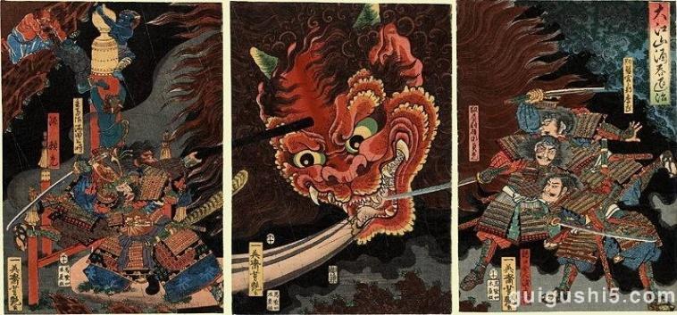 歌川国芳笔下的酒吞童子退治,左侧武士为渡边纲