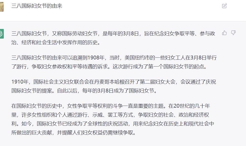三八国际妇女节的由来可以追溯到1908年,当时,美国纽约市的一些妇女工人在3月8日举行了游行,争取妇女参政权和平等待遇的诉求。这次游行成为了第一个国际妇女节的起点。