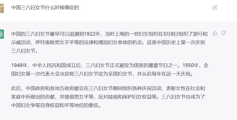 中国的三八妇女节最早可以追溯到1922年,当时上海的一些妇女组织在3月8日组织了游行和示威活动,呼吁废除男女不平等的法律和增加妇女参政的机会。这是中国历史上第一次庆祝三八妇女节。