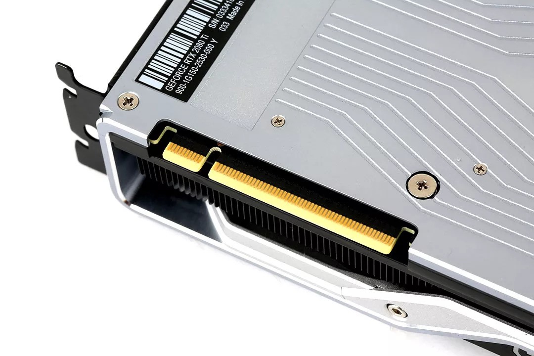 ▲RTX显卡的多卡互联金手指已经由GTX系列的2长1短变为了1长1短,同时,这一代RTX显卡的多卡互联也被正式赋予NVLink的连接方式,不再沿用SLI的名称。