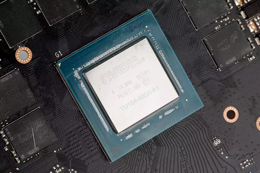 ▲环状排列的GDDR6显存颗粒,应该是来自美光的GDDR6显存片,单颗1GB容量。RTX 2080 Ti(上图)配置11GB,而RTX 2080(下图)配置为8GB。