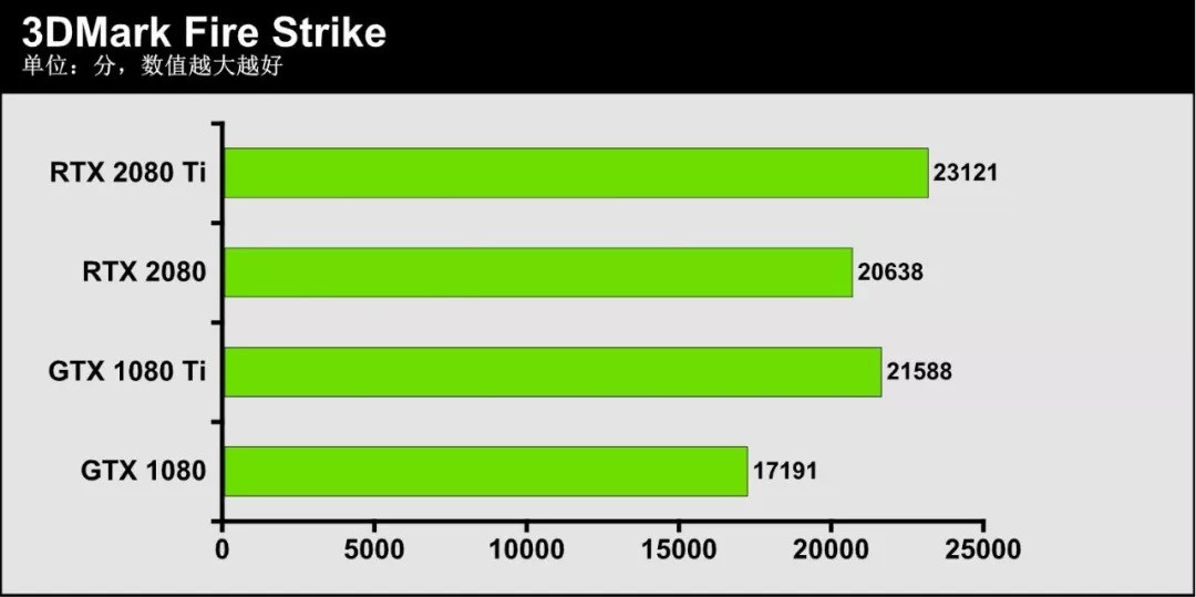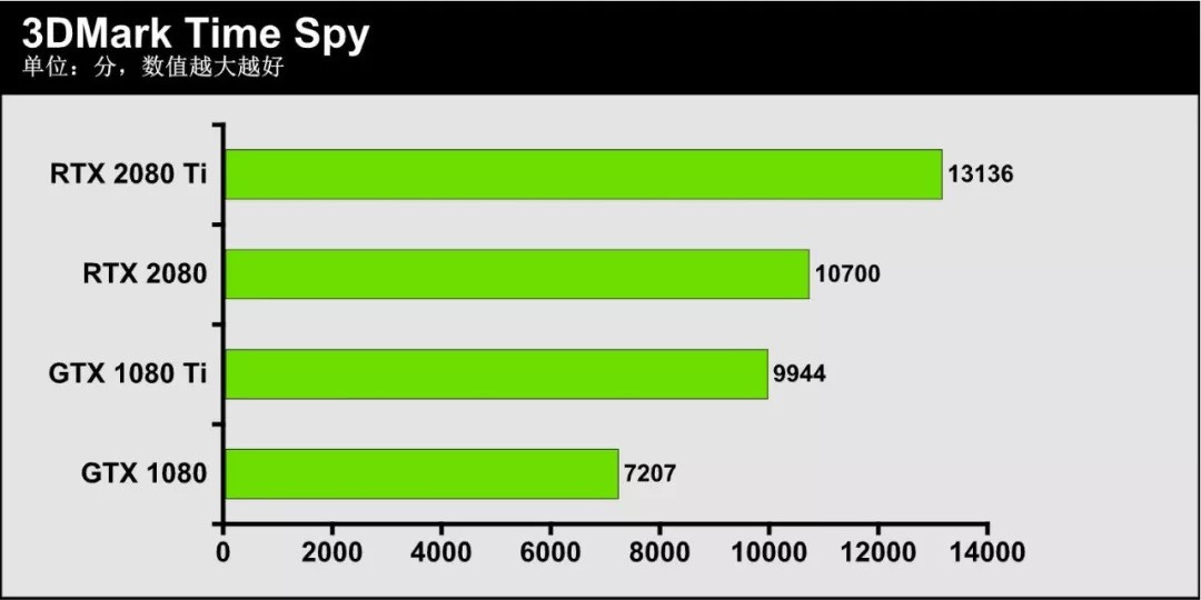 值得一提的是,尽管在流处理器数量上RTX 2080相比GTX 1080 Ti减少了许多,但凭借先进的核心架构、GDDR6显存的优势和更高一些的频率,这一代的次旗舰RTX 2080在3DMark理论性能上已经逼近了前一代旗舰产品GTX 1080 Ti,甚至在3DMark TimeSpy的测试中已经超过了GTX 1080 Ti。