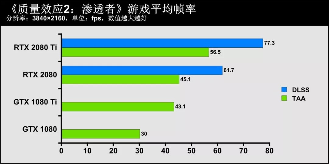 ▲《最终幻想X V》和《质量效应2:渗透者》游戏性能测试(注:GTX 1080和GTX 1080 Ti不支持DLSS)