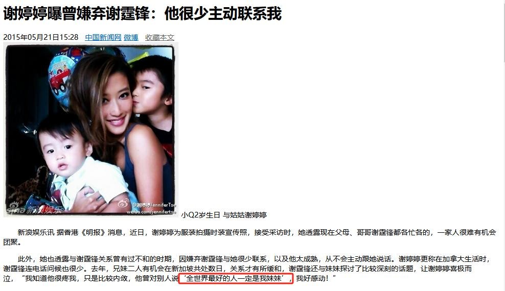 但其实,对于谢霆锋来说,全世界最好的人,一定是他的妹妹。