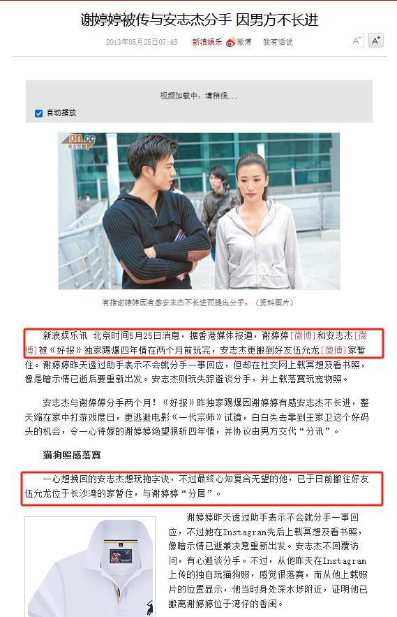 而原因则是因为谢婷婷觉得对方不上进。