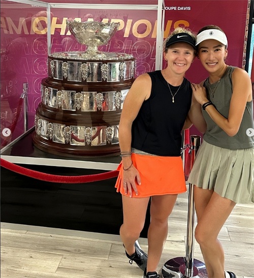 自小学习网球的谢婷婷,在冠军面前,毫不逊色。