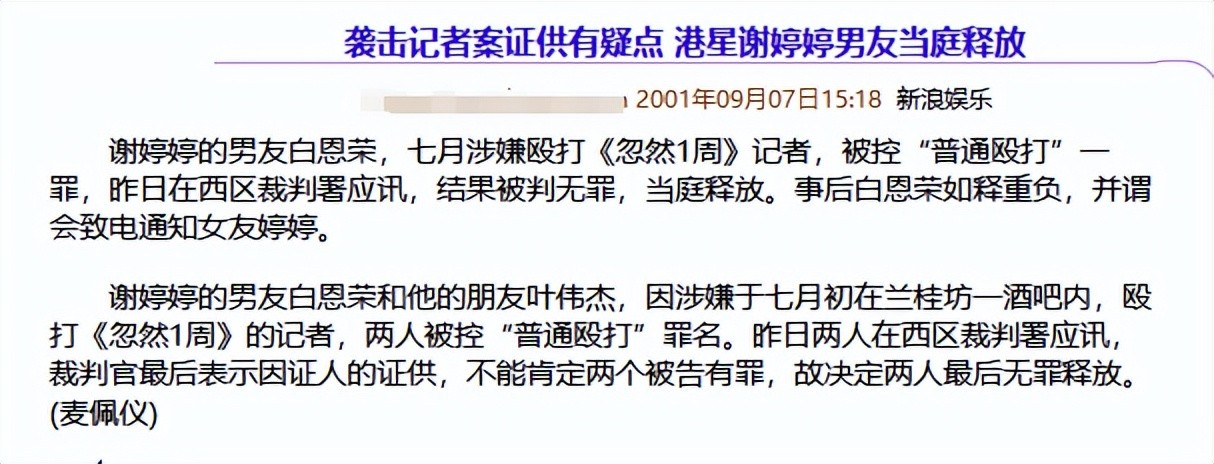 2001年,19岁的谢婷婷,被媒体拍到了她的第一任公开男友白荣恩。