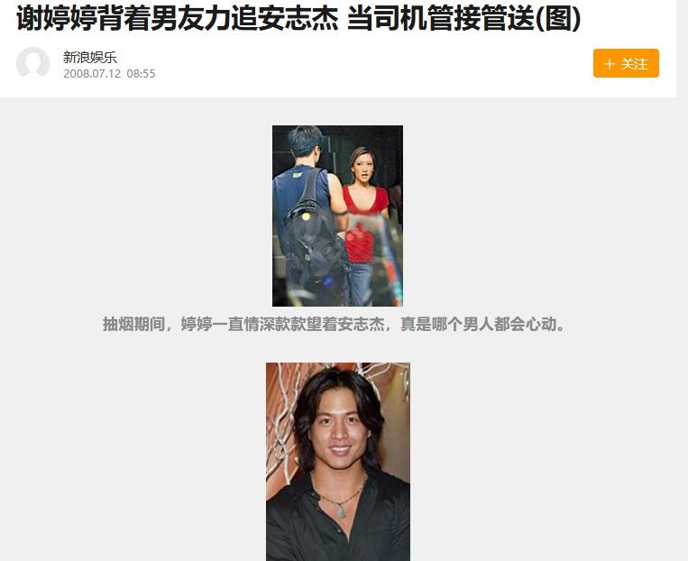 直到2008年6月25日,已有男友的谢婷婷,被传出力追安志杰的消息。