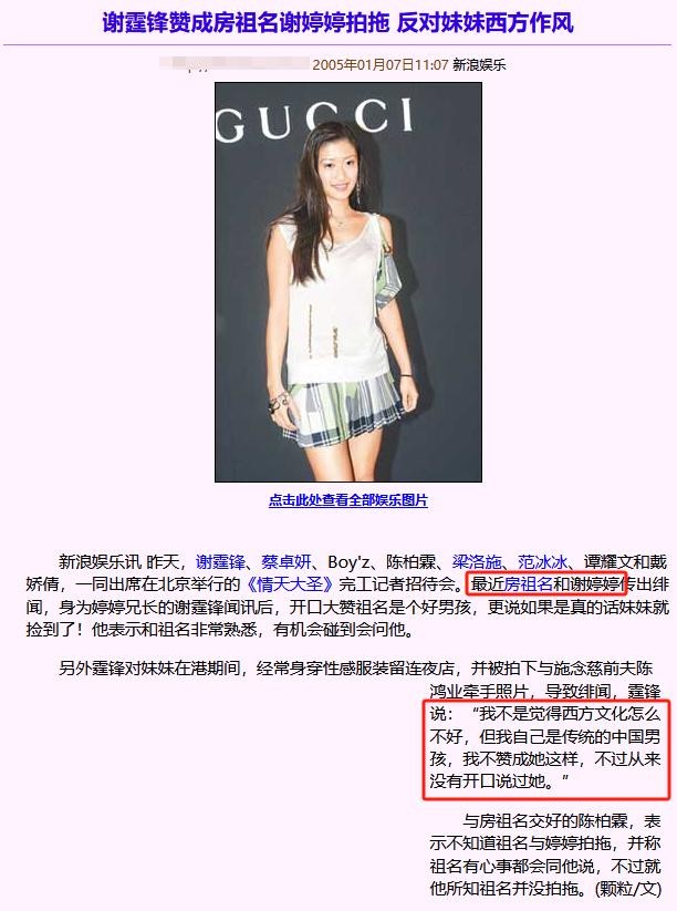2005年 1月,谢婷婷和房祖名传出了牵手绯闻。