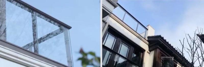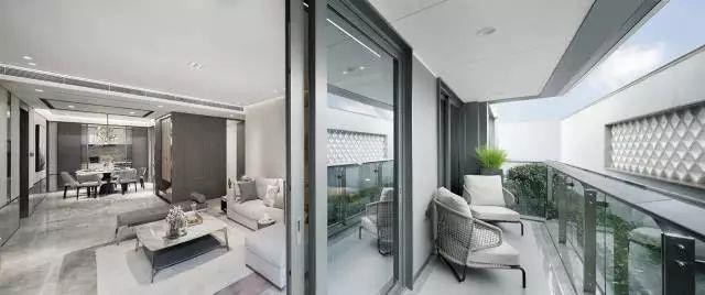 阳台栏板由中式传统的美人靠改成了落地玻璃栏板,增加户内采光和通透性的同时,也能更大程度地实现引园入景的效果。