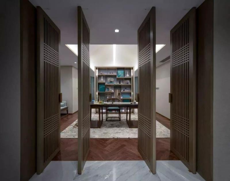 双扇栅格门,让内外景致相映相融,营造“登堂入室”的礼仪风范。