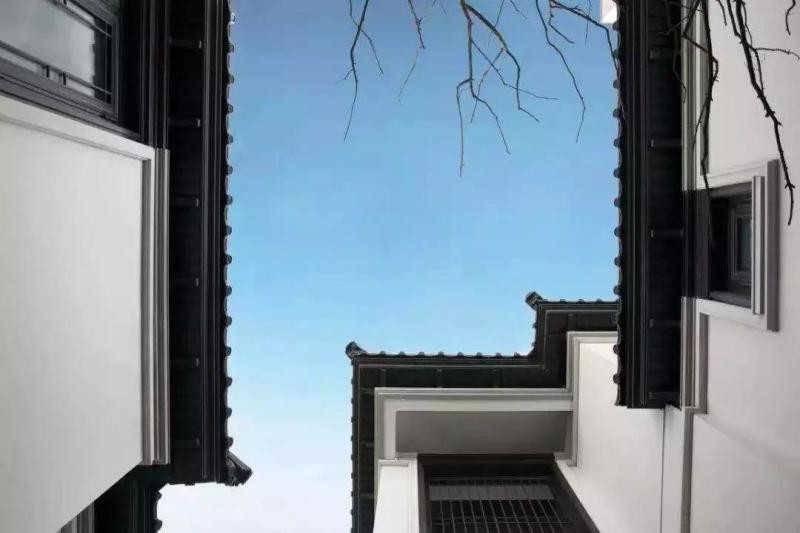 用大面积的玻璃,代替传统江南院落的白墙,纯净透明的玻璃材质,增强了室内外的关系互动,同时也围合出“空”的意境营造。