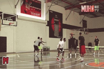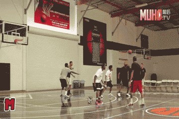 五、合理冲撞区内线掩护:内线队友进到合理冲撞区做挡拆,队友借掩护绕半圈摆脱防守,接球直接出手。