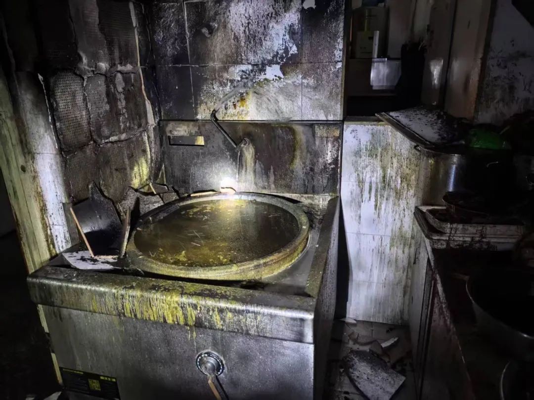 消防救援站到场后,油锅火势已被烟道内消防自动灭火设施扑灭,但后厨内仍有部分浓烟未散尽,消防救援人员对现场进行了进一步清理,并确保无复燃可能。