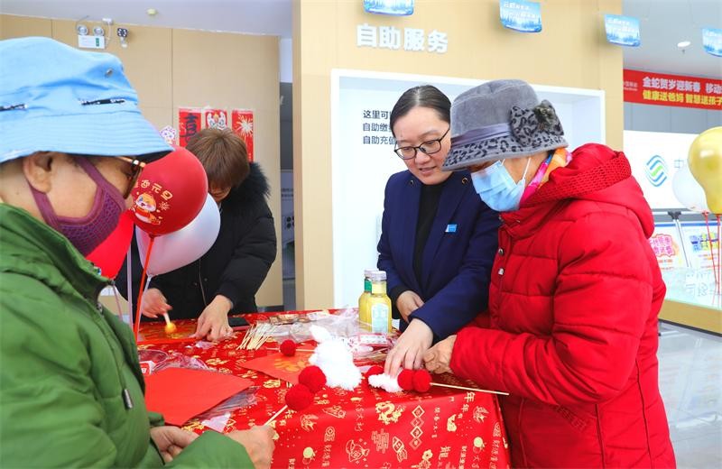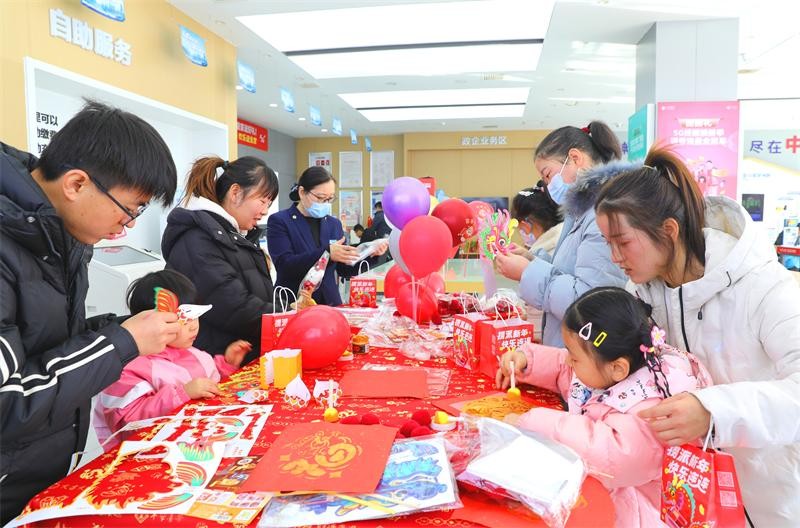 营业厅内,志愿者邀请客户参与蛇年福字拓印活动,让客户亲身体验非遗文化的魅力。一张张福字不仅承载着咸阳移动的温暖服务,也让孩子们和家长的脸上洋溢着喜悦。此外,志愿者们还协助家长和孩子们制作非遗花灯,将祝福寄托于花灯之上,传递给亲朋好友。