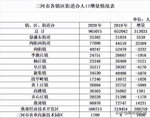 至今为止,最为官方的人口数据莫过于第七次人口普查,查阅有关三河市人口普查公报信息,截图如下: