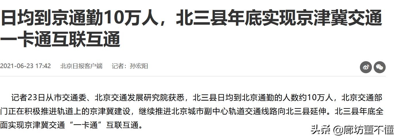 整个北三县日均到北京通勤的人数是多少?对此2021年06月23日北京日报有官方报道: