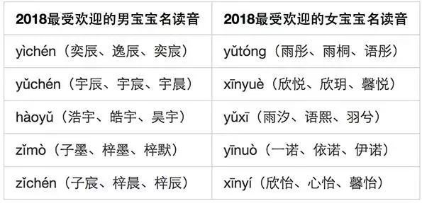 2018年最受欢迎男女宝宝读音 来源:2019姓名全景报告