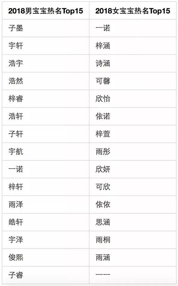 2018年男女宝宝热名第一分别为“子墨”、“一诺”