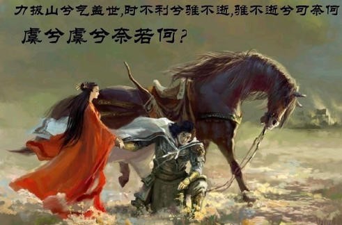 力拔山兮气盖世,时不利兮骓不逝!骓不逝兮可奈何,虞兮虞兮奈若何!