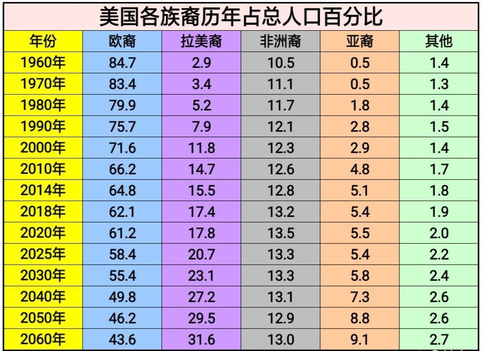 美国个族裔发展趋势