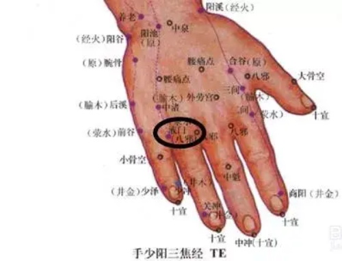 每晚睡前按揉液门穴3~5分钟,长期坚持。