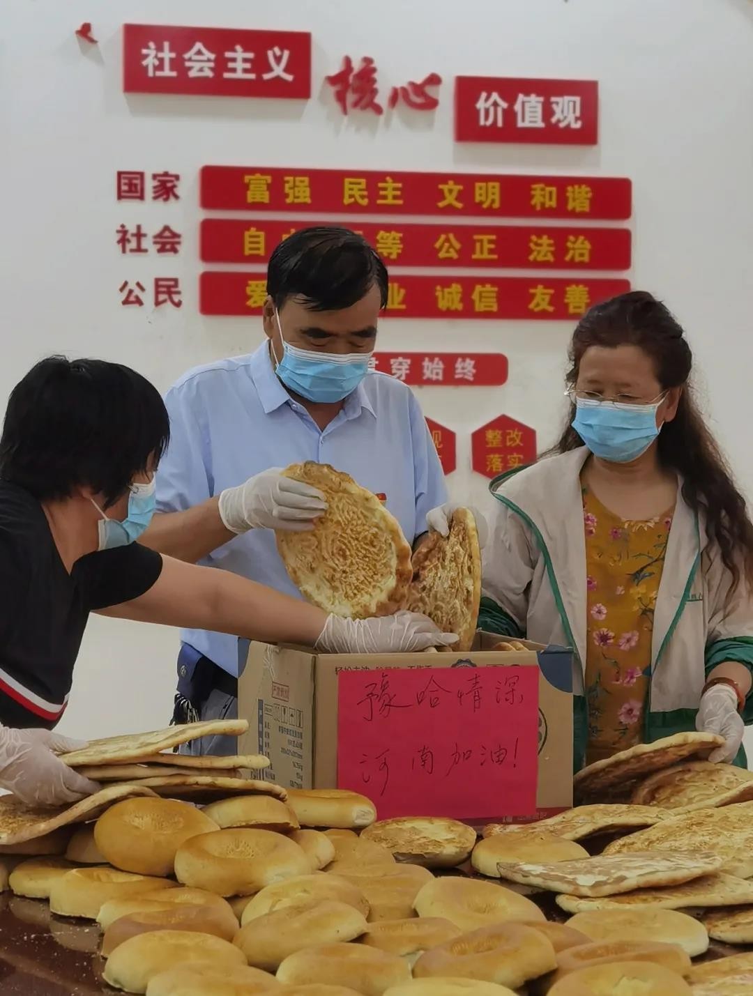 “支援河南,暂不对外营业”。哈密很多打馕店门前立着的告示牌成为“最美街景”。满载爱心馕和哈密瓜的运输车驶出哈密市区,他们日夜兼程,紧急赶往河南灾区。