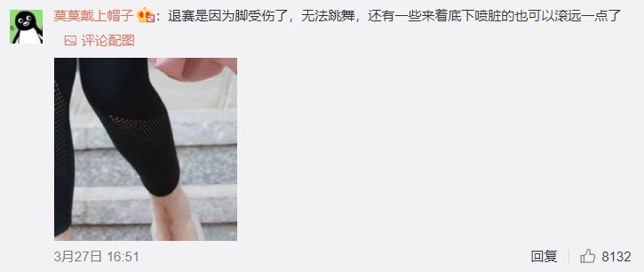 而网友的“腿伤说”,是这两天才出现的消息,证据是视频截图。这是一条在李熙凝下面的评论,李熙凝没有回复。