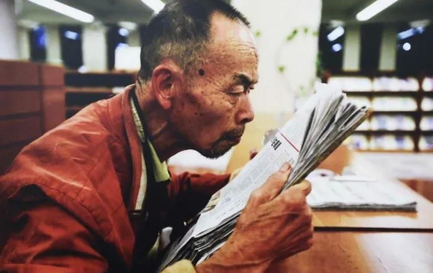 照片拍摄时,老人正在聚精会神地读书,丝毫没有察觉自己读书的一瞬间已经被旁人记录。