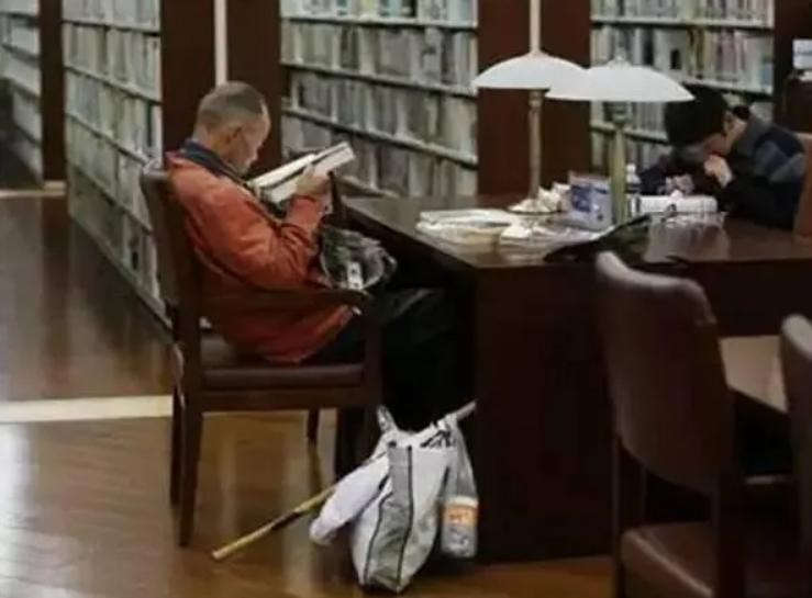 2014年,一张“杭州图书馆——拾荒老人”的照片出现在媒体上,引起了广泛热议。