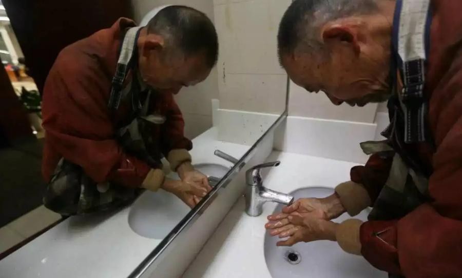 来到图书馆之后,韦思浩老人从不打搅其他人,径直走向最偏僻的角落,将随身携带的拾荒物件放置在一旁,悄然走进了卫生间。