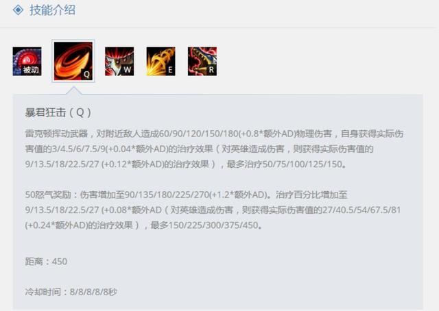 核心技能,集推线/消耗/回复/攒怒气/拉扯于一身的技能,不仅仅是一个AOE那么简单,恰当的Q技能使用非常重要。