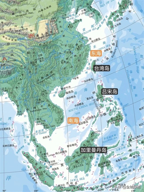 再比如我国南海,东边和南边被东南亚数量众多的岛屿和群岛包围,加里曼丹岛、吕宋岛等面积都不小,但我们也不能说它们位于南海中。