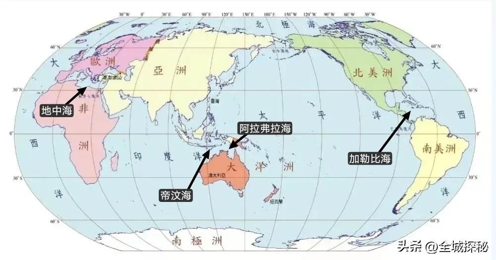 全球四大洋与地中海分布图
