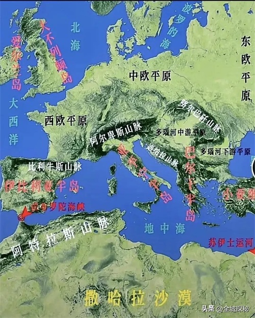 北边的欧洲,是世界上经济最发达的地区之一,南边的北非地区沙漠遍布,除了地中海沿岸地区外,大部分地方自然条件非常恶劣,是世界上比较落后的地区;