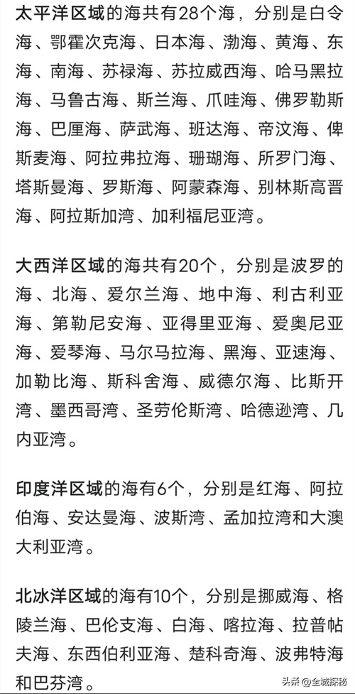 世界54个海以及10个海湾汇总