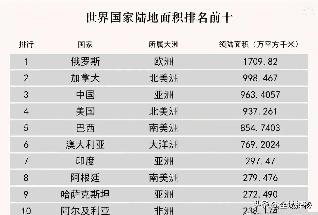 世界面积最大的10个国家
