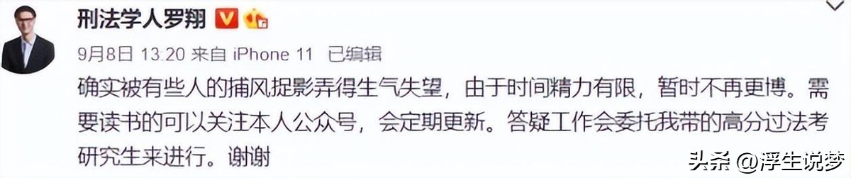 无可奈何的罗翔老师只能将微博清空,并且停止更博,