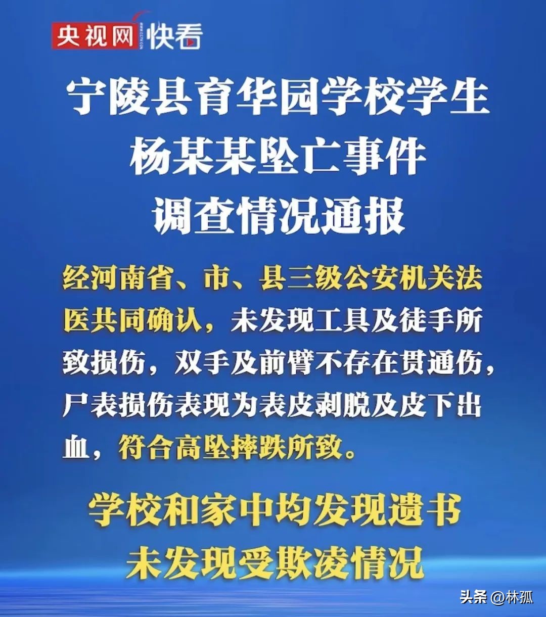 “尊重亲属意见”,不对外公布,这就确定了是自杀身亡,也就彻底推翻了此前家属情绪激动的“自称孩子遍体鳞伤,疑似生前遭到学校霸凌”。
